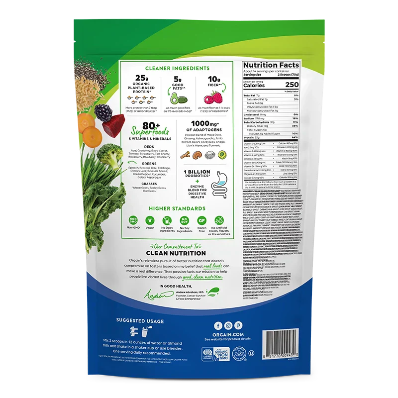 Orgain Perfect Meal is hand©\crafted to deliver complete nutrition from REAL food ingredients. Packed with 25 grams* of organic plant-based protein, 10g* of fiber, 80+ Superfoods & other nutrients, along with probiotics, digestive enzymes and adaptogens, Orgain Perfect Meal is so full of good stuff, we challenge anyone to eat this well!